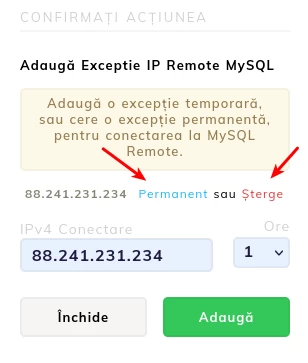• Im Moment ist die Funktion zum Hinzufügen von IPs in MySQL-Remote nur für Shared-Pakete erlaubt. Wenn Sie es also auf einem VPS hinzufügen möchten, müssen Sie die technische Abteilung von Hostico kontaktieren.