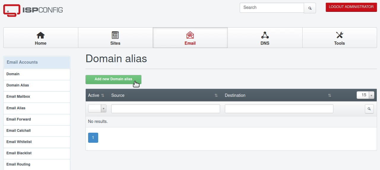 E-Mail-Filter für Domain-Alias im ISPConfig-Control-Panel konfigurieren.